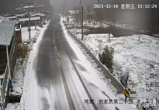 西安城区多地也普遍下起了小雨,灞桥区雨势相对较大,长安滦镇鸡窝子已经有了积雪