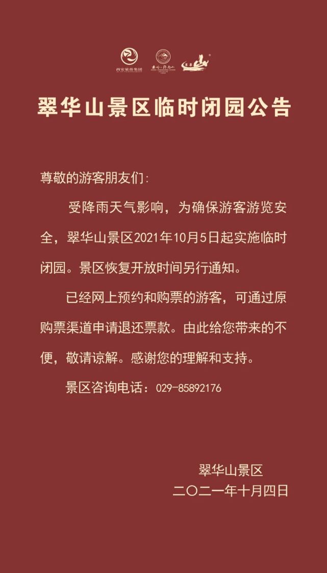 据华山风景名胜区消息,按照防汛工作要求,为确保安全,经研究,决定自2021年10月4日18时起,华山景区封山闭园。
