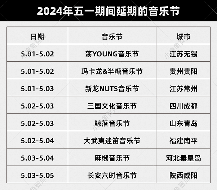 再来看看五一档延期缺席的音乐节。