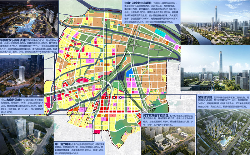 岐江新城在区域东部、中部及西部分别规划有“中山站片区”“总部经济片区”以及“中山北站—欢乐海岸片区”,总面积约3平方公里,未来将作为中心城区三大现代服务业的集聚区,重点布局现代服务业。目前,岐江新城已布局多个大型现代服务业项目。其中,总部经济生产服务平台布局项目最多,引进了富元中山108国际总部经贸中心等项目。