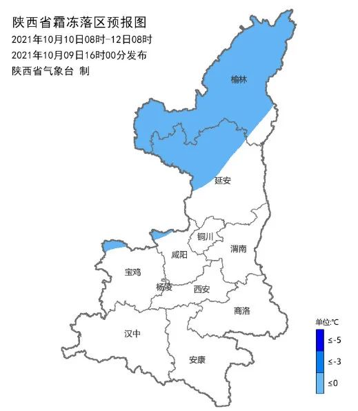过程日平均气温全省下降4~6℃ ,最低气温出现在11日凌晨,陕北、铜川北部、宝鸡北部和咸阳北部最低气温可达2℃以下,大部分地方有霜冻。