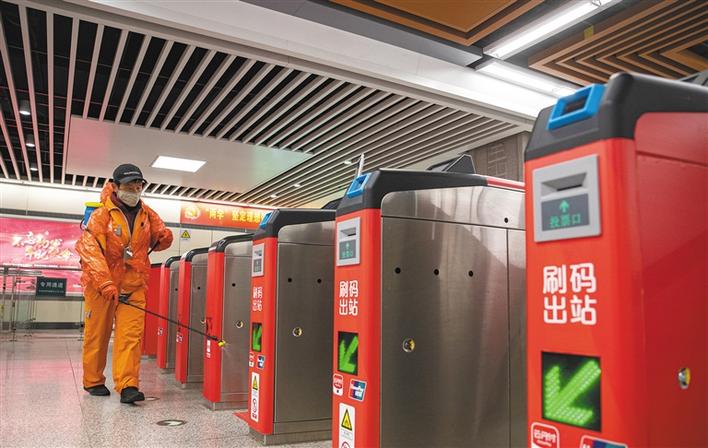 地铁站内正在进行日常的消杀工作,乘车除了需要测温还需要登记身份证。车站内一位提着一大包食品的男子正匆匆往乘车点走。被拦下询问要去哪里,这位叫郭红旗的男子说:“我包了包子,给老娘送点,然后去老娘家门口的执勤点,把包子给工作人员也送点。眼看他们几天几天守在那儿,天天吃泡面,不容易。”