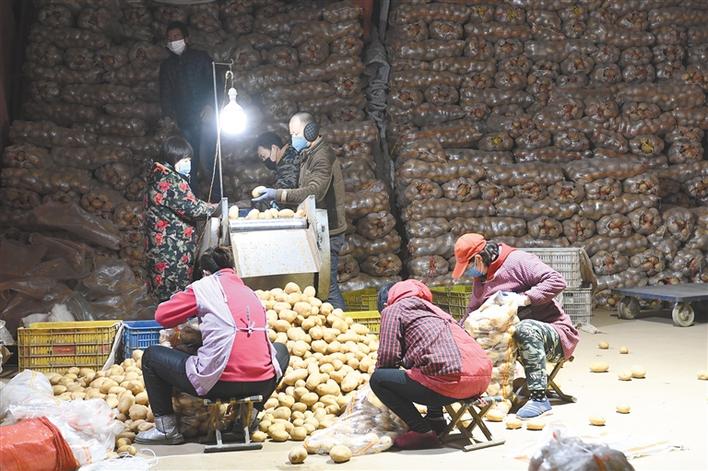 “现在疫情这么紧张,你们还是天天这样忙吗?”“再大的事,人还是要吃饭呀。我们不把菜发出去,大家咋吃饭。”这位叫杨碧霞的大姐说话爽利。她说每天他们的摊位都要发出6吨多土豆。