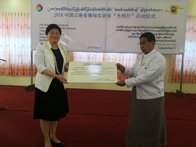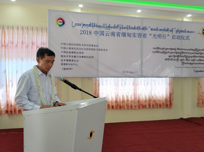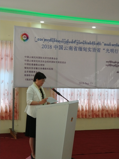 2018年9月13日,2018中国云南省缅甸实皆省“光明行”启动仪式在实皆省敏目镇区提桑眼科医院隆重举行,驻曼德勒总领事王宗颖出席并致辞。