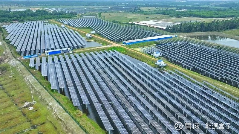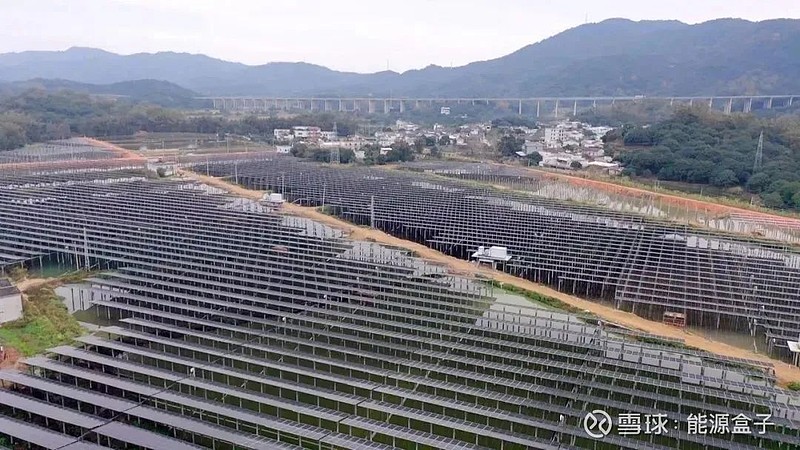 在广东潮州的归湖镇凤东村,66个鱼塘紧密相连,总面积约1111亩,鱼塘上距离水面3米处,15万块单晶硅光伏板排列整齐,形成一片“光伏海”,场面非常壮观。