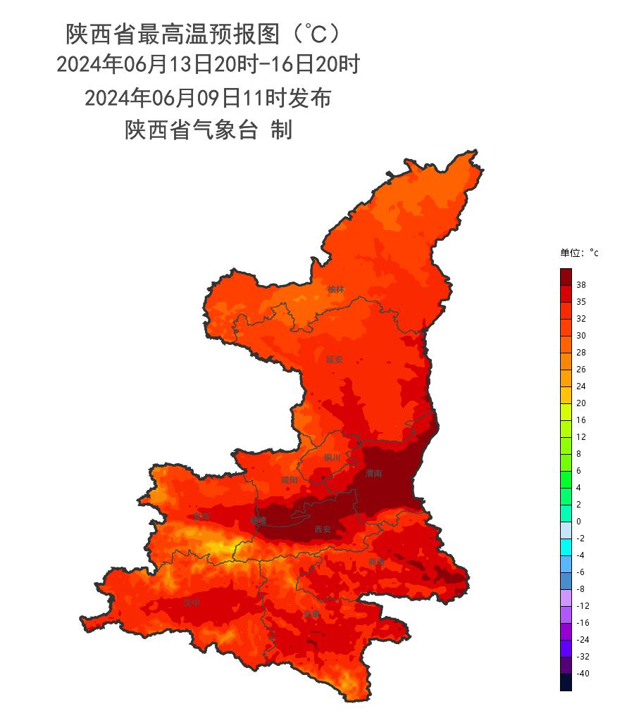 13日:陕北黄河沿线、关中部分、陕南东部局地有35~37℃的高温天气,关中平原东部部分地方可达38~40℃。