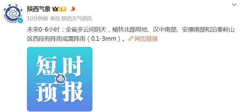 今天晚上:全省多云间阴天。陕南东部局地有小雨或阵雨(0~3毫米)。