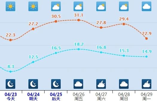 不过降温时间短暂,预计明天白天开始,气温又会再次上升,随后更是一路冲高。