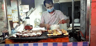 一家小小的路边摊,专营烤蚝和元贝,在夏天也火爆街头,熟练夹烤,撒上特制蒜蓉辣椒酱,时不时的炭火冒起,围观的人儿越来越多,赶紧点单各来一份。