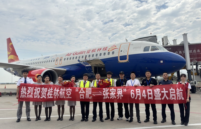 6月4日,由桂林航空执飞的桂林=合肥=张家界航线首航仪式在合肥机场成功举行。该航线航班号为GT1087/1088,机型A320,班期每周二、四、六的10时40分从合肥起飞,12时20分到达张家界;13时10分从张家界起飞,14时35分到达合肥。