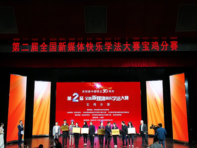 10月17日,由司法部普法与依法治理局指导,法制日报社、中共陕西省委普法工作领导小组办公室、中共宝鸡市委全面依法治市委员会主办,法治周末报社、中共宝鸡市委普法工作领导小组、宝鸡文理学院、融创互动(北京)文化传媒有限公司承办的第二届全国新媒体快乐学法大赛第十场线下赛——宝鸡分赛在宝鸡文理学院成功举办。来自宝鸡市公、检、法、司等相关部门以及宝鸡文理学院等院校的650余名观众现场观赛。