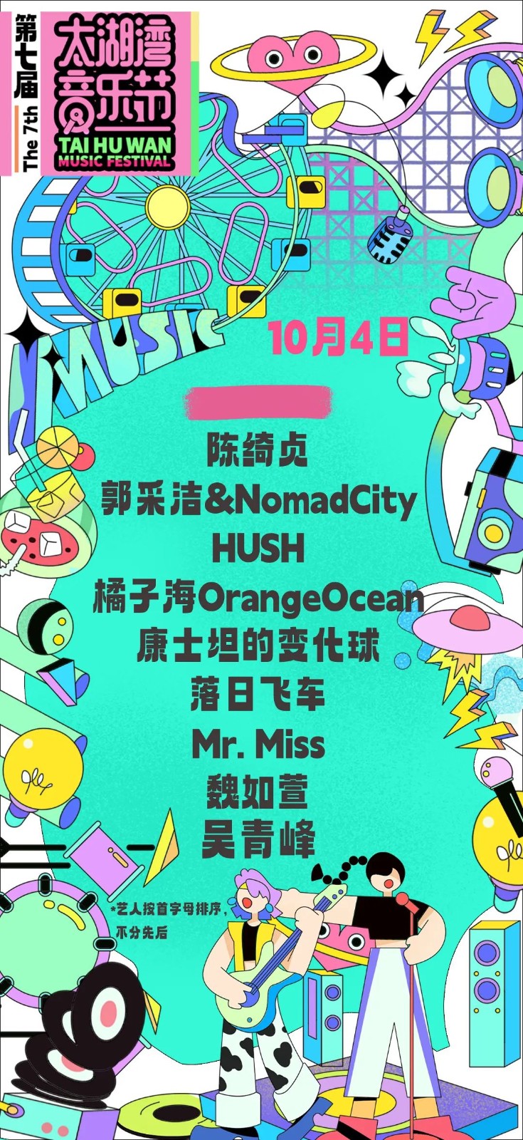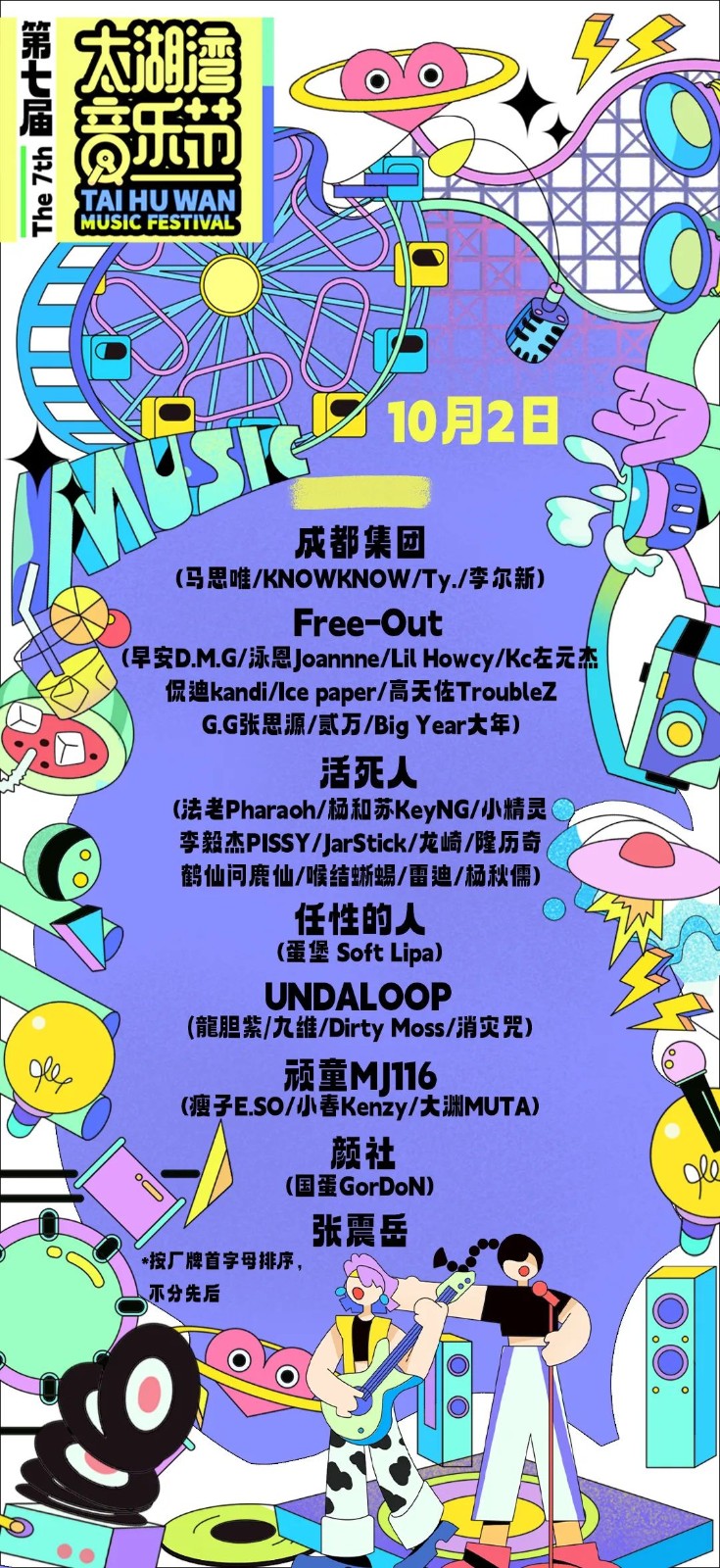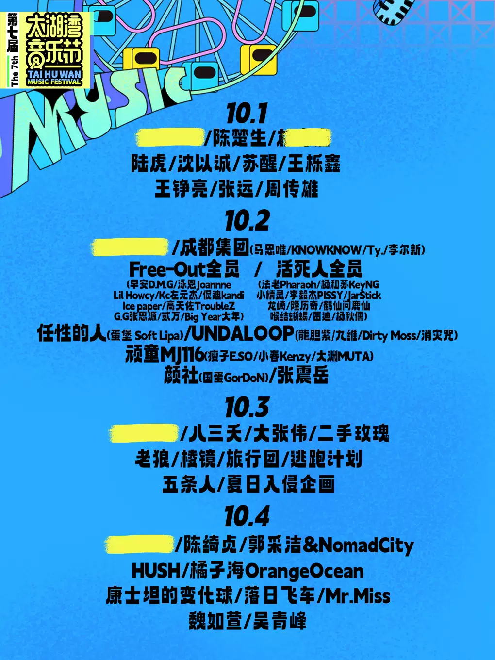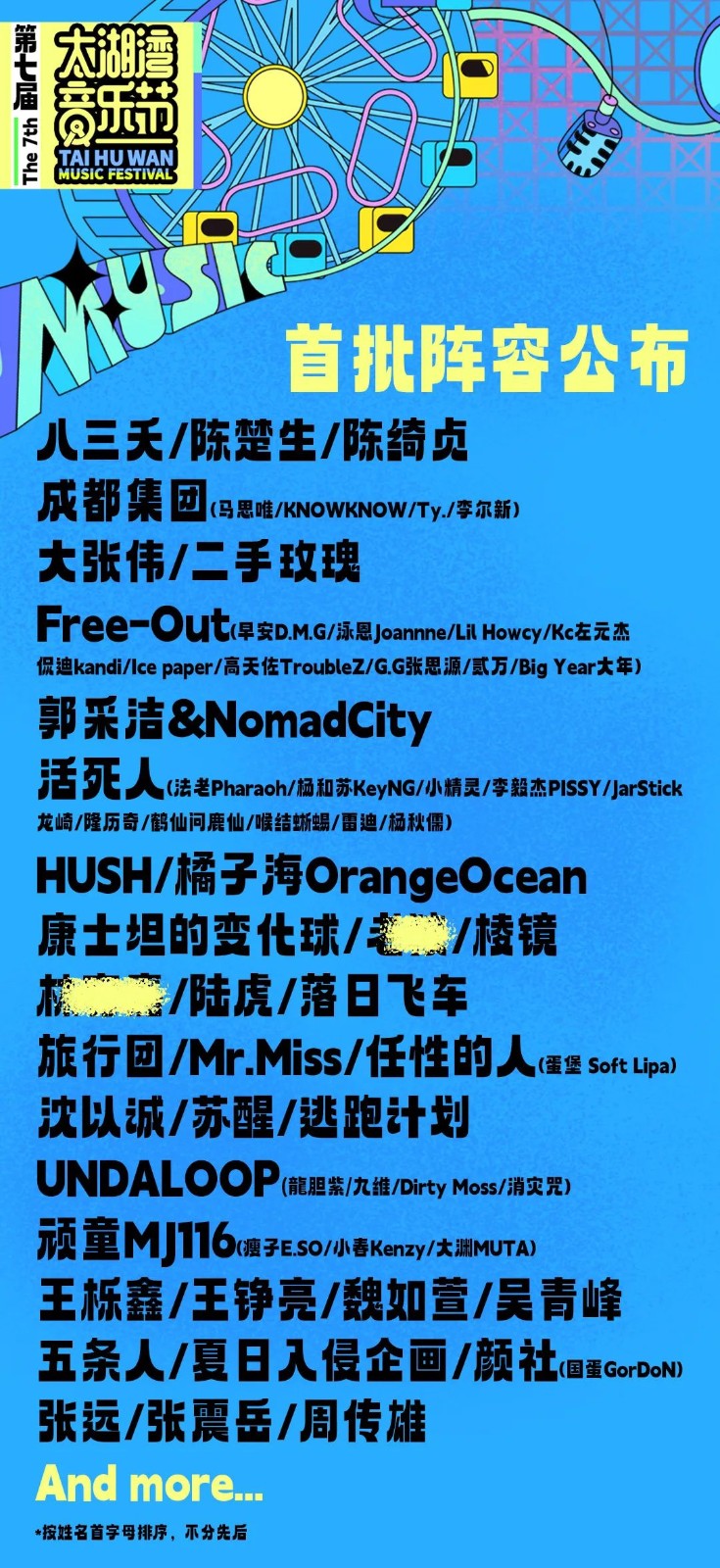 太湖湾音乐节已官宣嘉宾阵容: