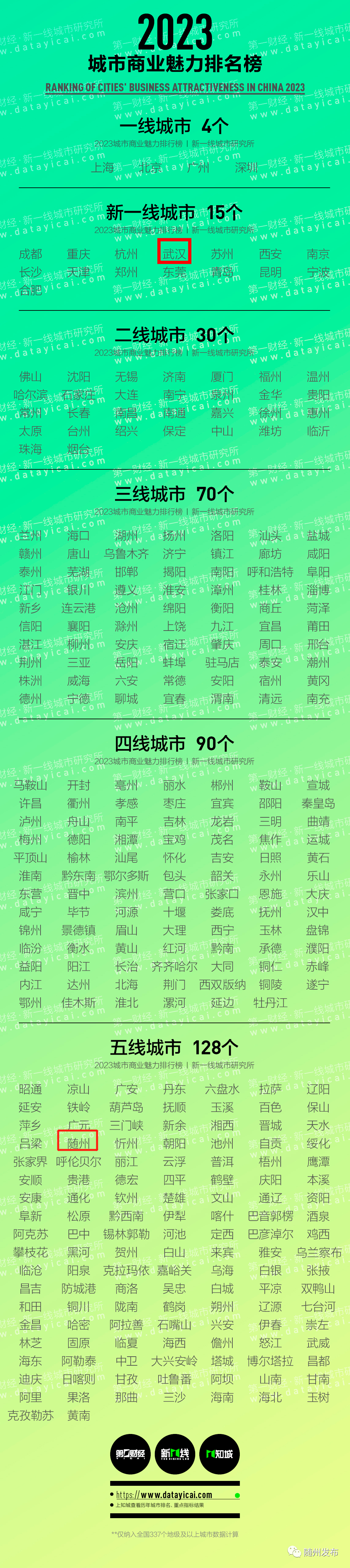新一线城市研究所的《城市商业魅力排行榜》发布,2023年15座新一线城市依次是成都、重庆、杭州、武汉、苏州、西安、南京、长沙、天津、郑州、东莞、青岛、昆明、宁波、合肥。