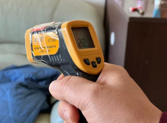 随后,记者又跟随市能源公司工作人员,随机走进裕民小区六号楼周先生家中,实地进行供暖测温,测温仪器显示周先生家中实时温度22摄氏度,达到了供暖标准。