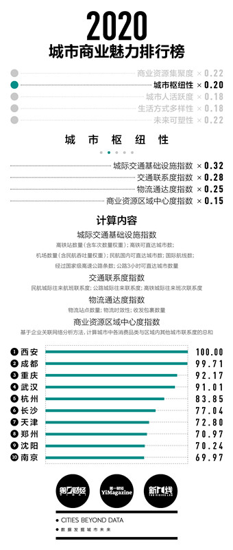 今年榜单的主要变化在于,当中加入了更多“人的选择”。比如我们在商业资源集聚度的商业核心指数中,首次引入了商圈到访人次这一指标。除此之外,我们也通过百度地图慧眼的新流入常驻人口指数、中国联通大数据智慧足迹的外来工作人口数量与变化等指标来关注城市对新城市人的吸引。