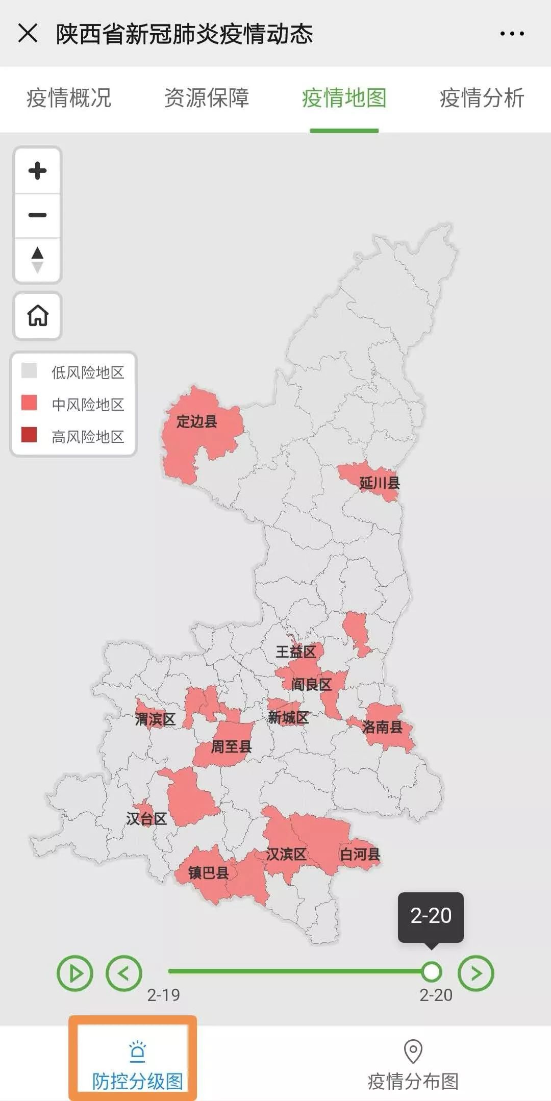 由自然资源部陕西基础地理信息中心技术人员开发的陕西省新冠肺炎疫情实时动态图也已经随之更新了疫情地图,将不同风险等级标注在动态地图中,大家可进入“疫情地图”下的“防控分级图”查看,具体操作方法如下: