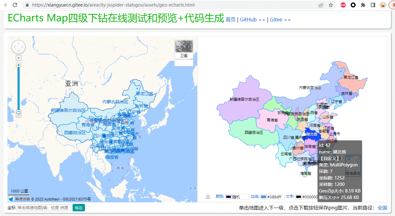 ECharts + 高德地图四级下钻: