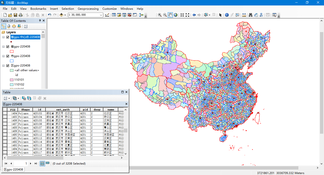 省市区三级边界(ArcMap Asia_Lambert_Conformal_Conic投影):