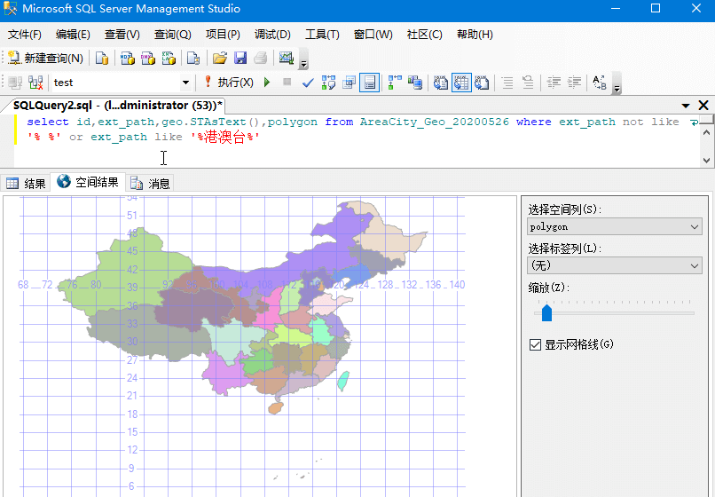 由于边界数据的解析比较复杂,请参考src/map_geo_格式化.js内的SQL Server的解析语句,或者使用 AreaCity-Geo格式转换工具软件 直接导入数据库,或者转换成shp、geojson、sql格式。