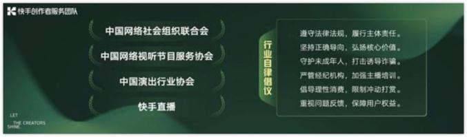 6.三大协会联合快手发布直播行业自律倡议:近日,中国网络社会组织联合会、中国网络视听节目服务协会、中国演出行业协会与快手共同发起行业自律倡议,进一步营造积极健康的行业发展空间。其中提到,要遵守法律法规,履行主体责任;严管经纪机构,加强主播培训;倡导理性消费,限制冲动打赏等。(中国新闻网)
