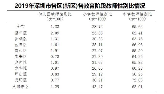 以下是从2019年深圳市社会性别统计报告中节选的表格: