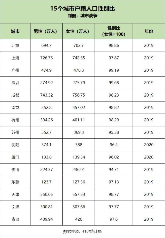 原标题:《15个特大城市的户籍人口,为什么都是女多男少?》