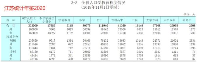 下面找到了江苏省的一组数据,确实是女研究生数量多一些: