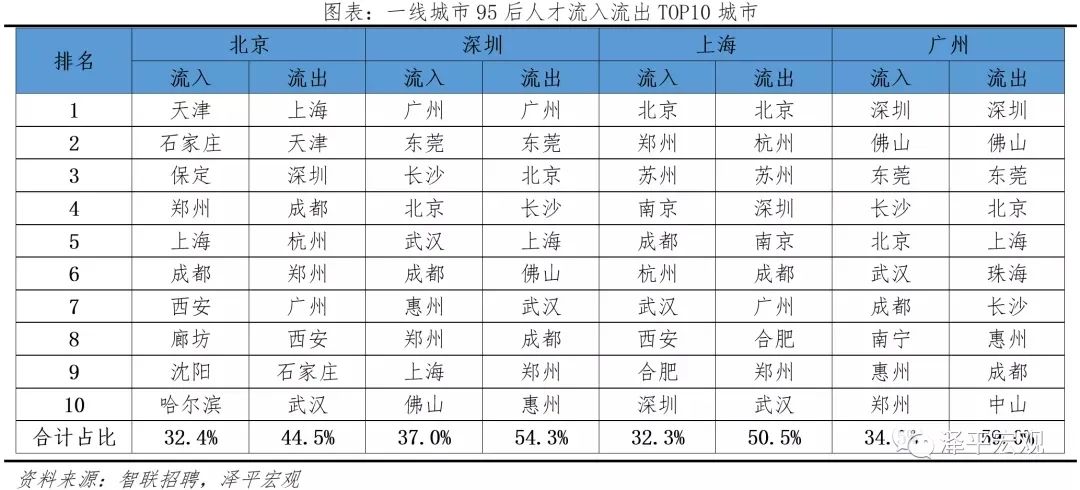 2.3人才流动趋势:95后更向往发达城市,一二线城市人才集聚、三四线人才流出