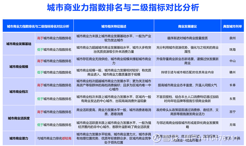 对比分析城市商业力指数排名与二级指标,微观各商业线级城市商业丰富度、购物中心存量空间研究等不同具象维度,我们可以对城市商业现状有更清晰的认知,并循此给出了城市商业力提升一些具象建议。