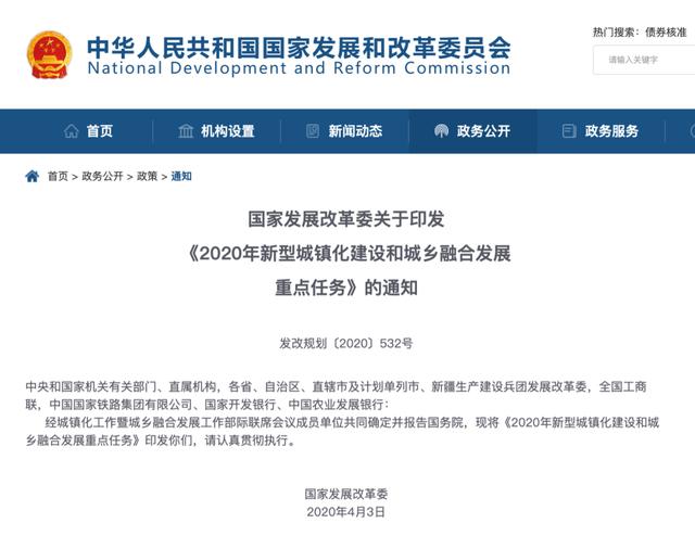 9日下午,《2020年新型城镇化建设和城乡融合发展重点任务》(以下简称《任务》)正式公布。