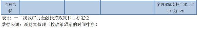 同时,各个城市也纷纷喊出建立金融中心的目标,根据自身资源和特色,提出了国际金融中心、全国金融中心、区域金融中心、产业金融中心及特色金融中心等不同的定位。除此之外,一大批金融专区、金融地标性大厦也不断涌现(表5)。