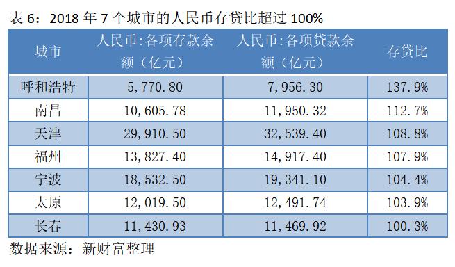 在我们的金融力榜单上也可以看到,第四梯队出现了金融业发展程度与城市经济实力倒挂的现象;统计局的数据也显示,很多计划建立区域金融中心的城市,金融业GDP的增速高于地区GDP的增速。而且,从30个城市的人民币存贷比可发现,有7个城市的存贷比超过100%(表6)。其中,呼和浩特的存贷比达137.9%,南昌的存贷比也为112.7%。在城市存贷比高企的同时,我们也发现,一些城市的农商行资产质量出现一定程度的恶化,不良贷款率上升。金融业发展较快,虽然表明城市在扶持、壮大金融业发展方面取得成效,但潜在的金融风险也需要警惕。