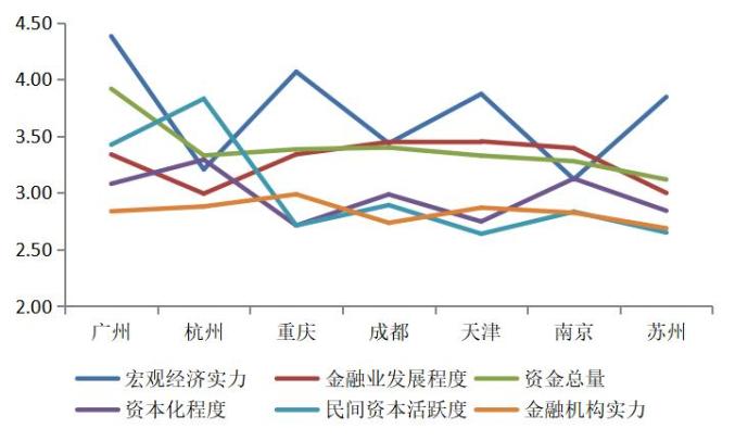 图3:广州、杭州、重庆、成都、天津、南京、苏州金融实力对比