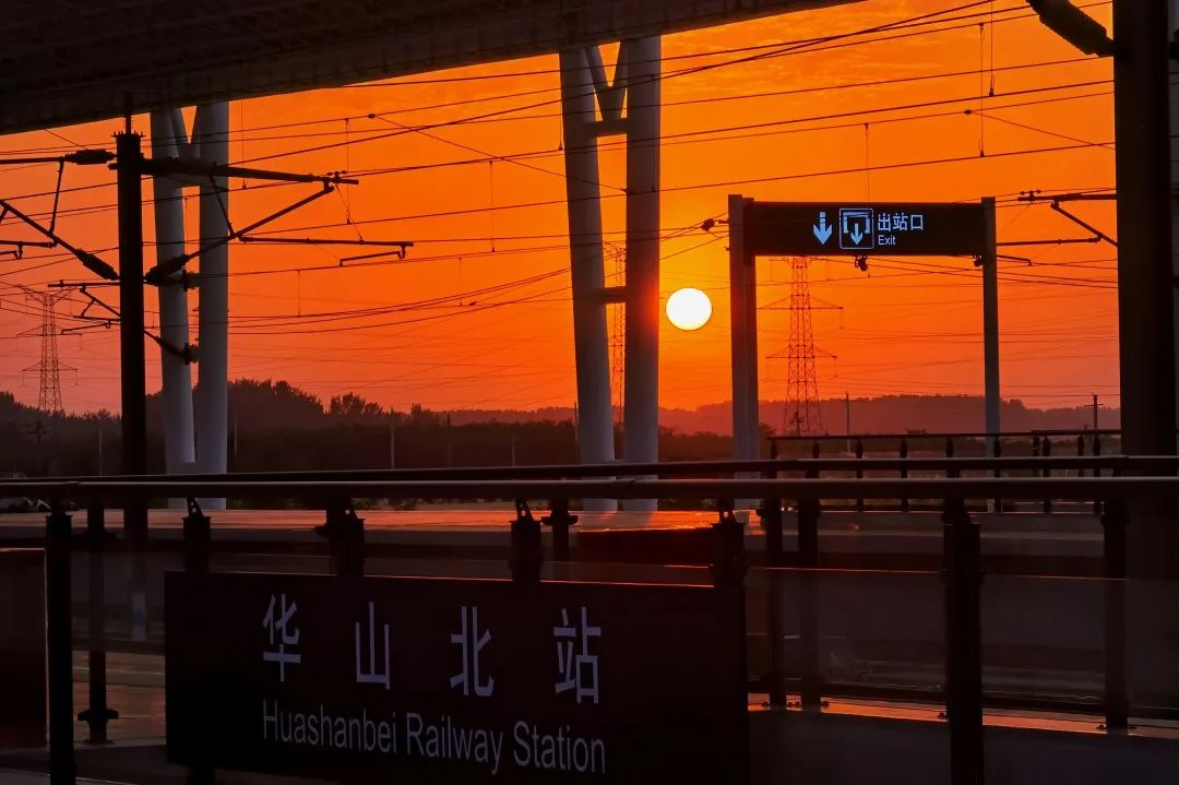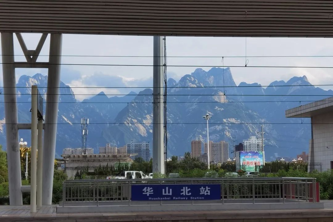 5.华山北站的站台可以拍到华山,大家一定注意乘车时间,千万不要因为眼前美景耽误出行。