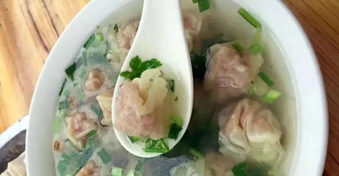 再撒上紫菜、香菜、葱花,鲜肉馄饨肉香扑鼻,清汤飘着油花。真是每一口都透着劲道,吃来叫一个“爽”!
