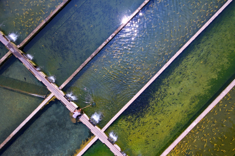 朔州市朔城区神头村的虹鳟鱼养殖场(8月3日无人机拍摄)。