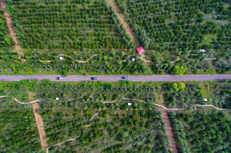 朔州市平鲁区卧龙山造林基地(8月9日无人机拍摄)。