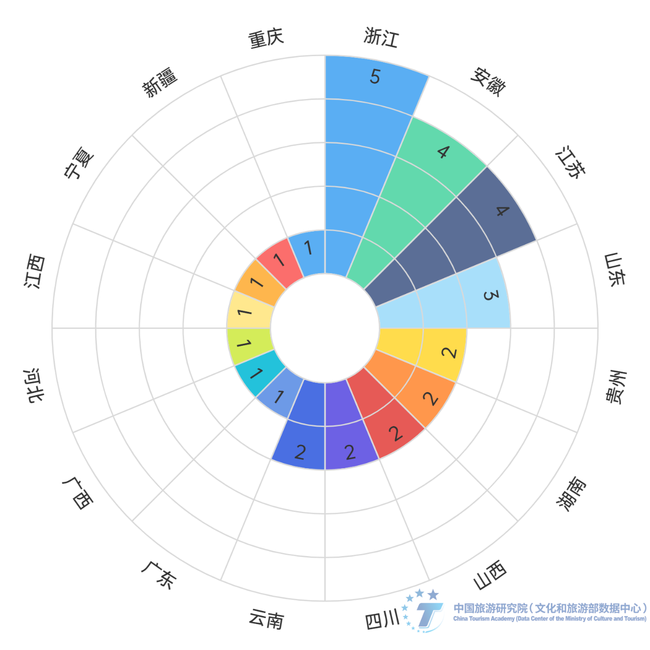 5A级古镇景区在江浙皖地区高度集聚。据统计,全国目前有33个5A级古镇景区,浙江省以西塘古镇、乌镇景区、南浔古镇、廿八都古镇和台州府城5个古镇景区居各省份之首,其次是安徽省、江苏省,均有4个5A级古镇景区。