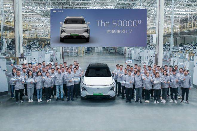 上市137天之后,吉利品牌旗下中高端新能源系列银河首款车型银河L7迎来5万辆下线。