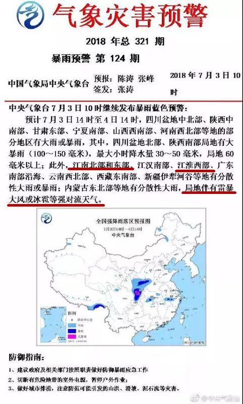 中央气象台发布的暴雨蓝色预警!