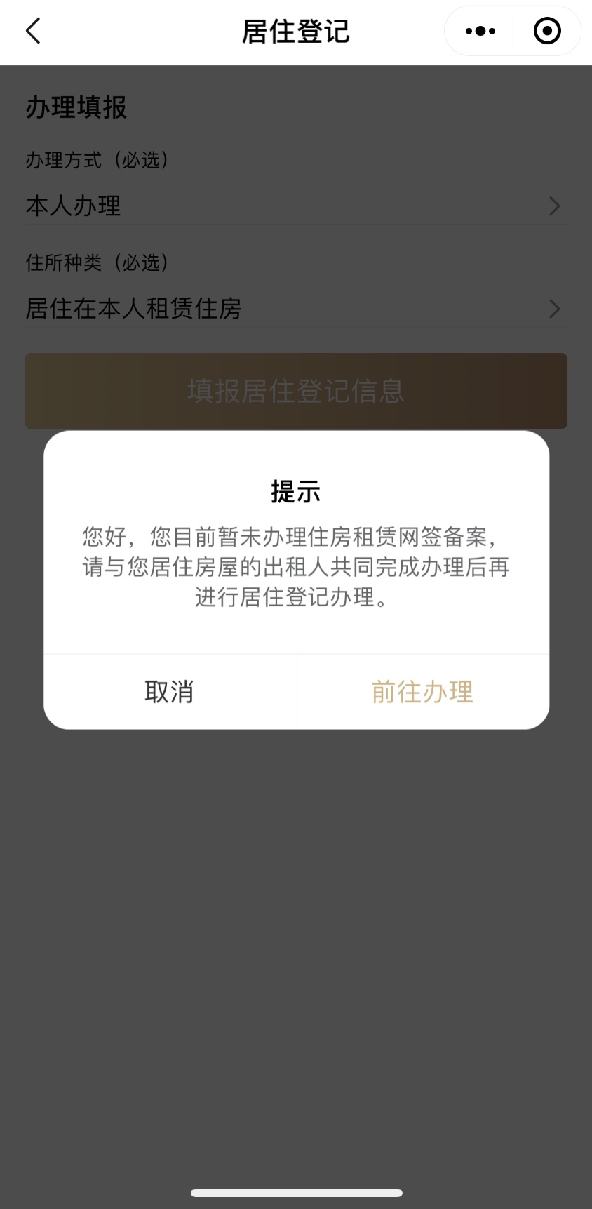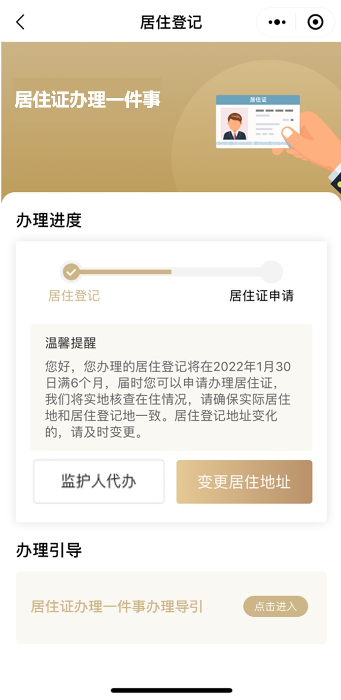 以下为已成功办理居住登记,需等待6个月才可发起办理居住证的页面: