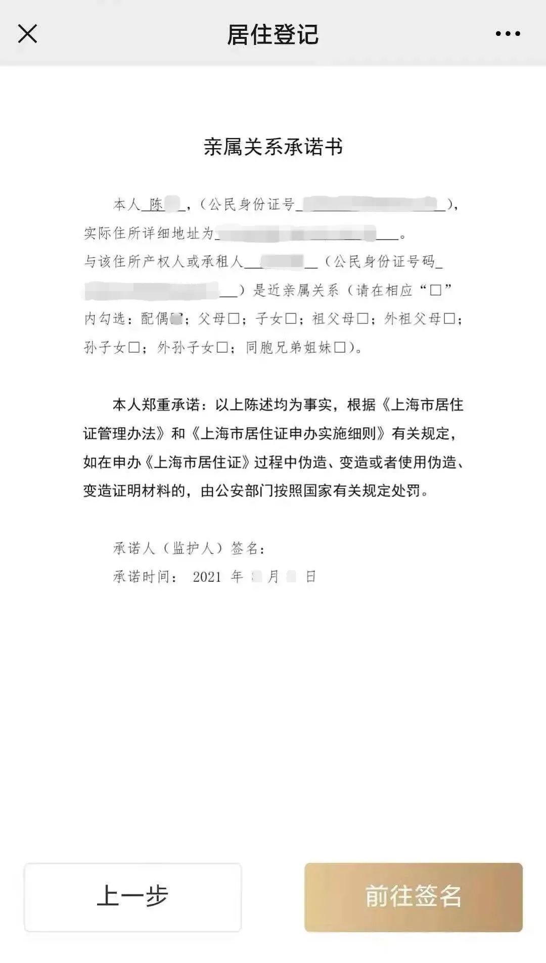 6、点击“下一步”按钮,进入下一页(亲属关系承诺书签字页或材料提交页)