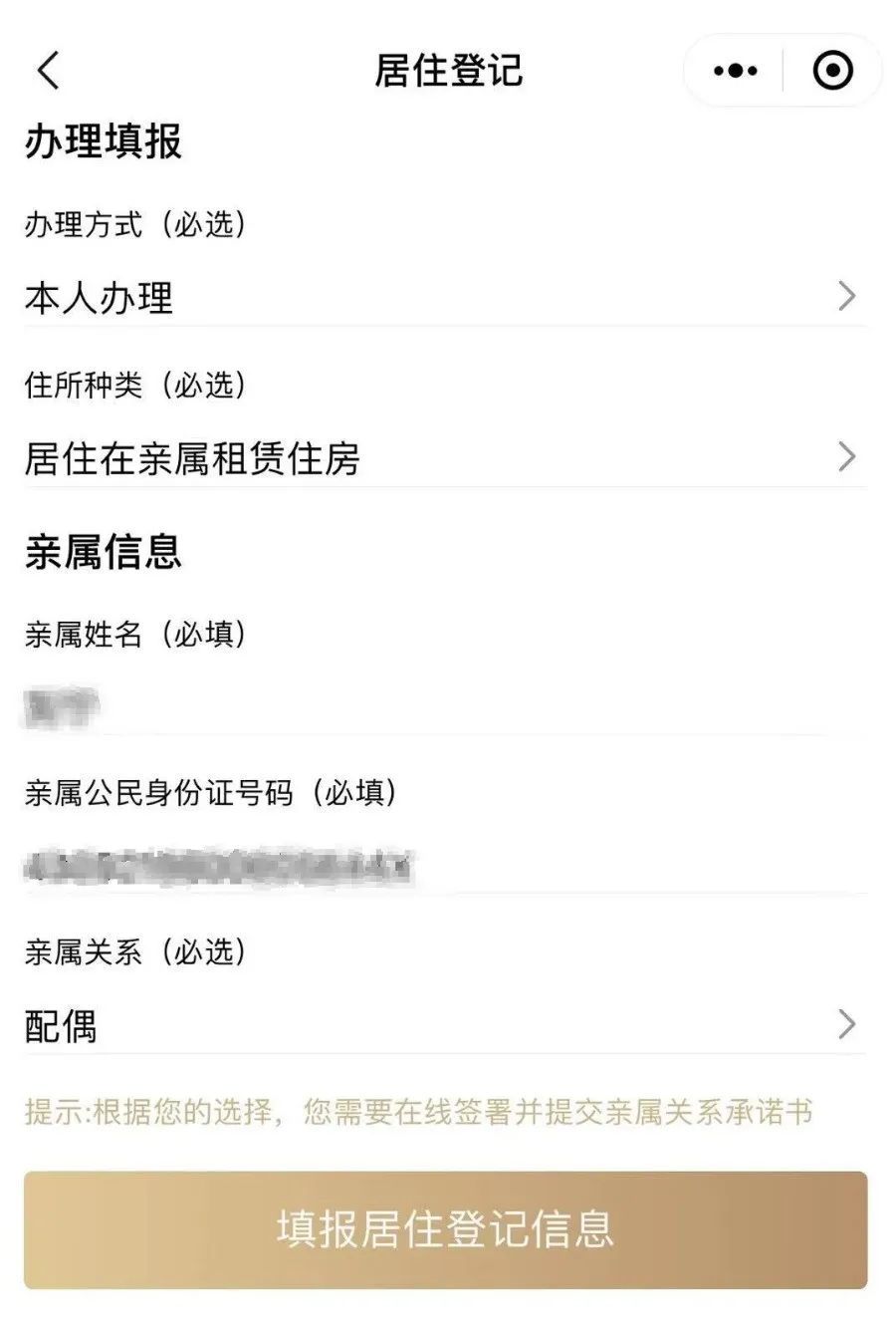 住所种类有5种情形,不同情形对应的材料是有区别的,涉及“亲属”的情形,都需进行承诺书签字。