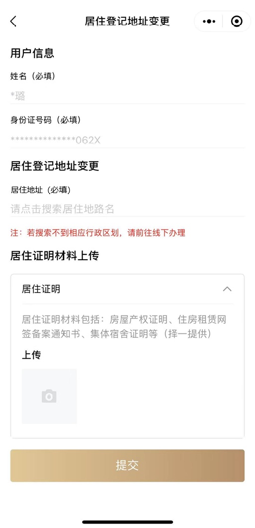 用户可点击页面上“变更个人照片”/“变更居住证地址”进行调整。