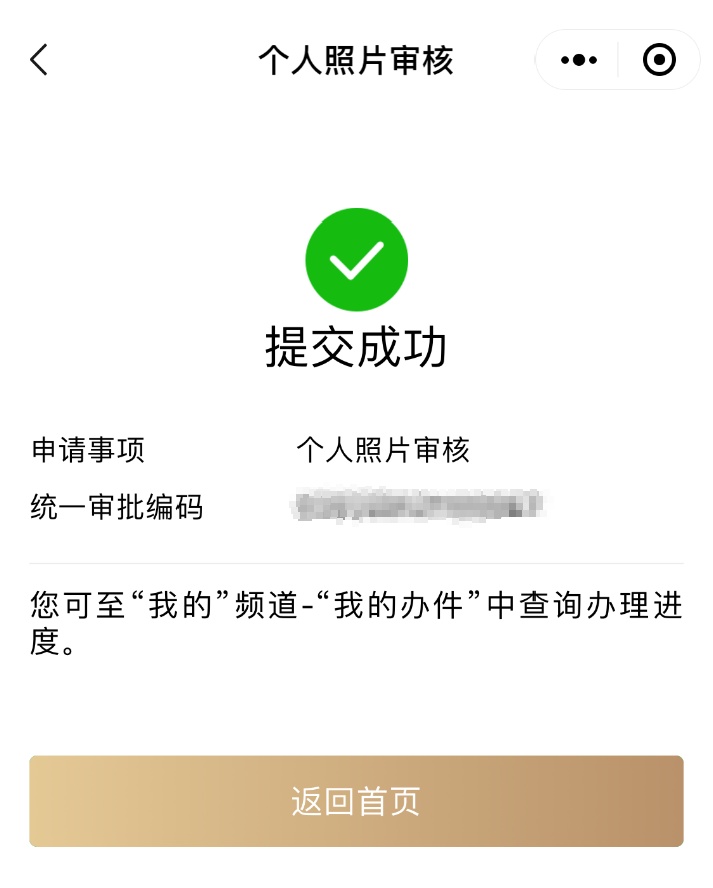 4、确认使用照片或自行拍照上传照片后,进入提交成功页。