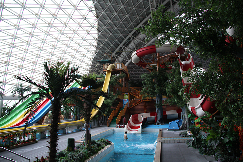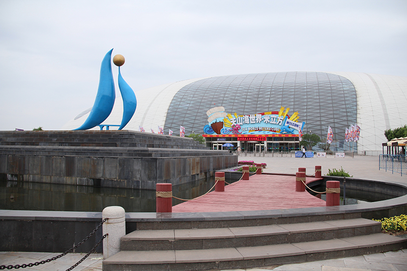 天津“米立方”项目设计理念来自国际知名的“小站稻”,建筑远看如同嵌入水中的一粒稻米,建筑顶部采用通透新材料,白天自然光从采光顶照入室内,不需人工照明,室内戏水面积达15000平方米。 天津米立方海世界是室内恒温水上游乐中心,全年保持室温30℃、水温28℃,24小时循环消毒,水的纯净度可达国际标准。500多米长的漂流河巧妙地穿越山洞,与飞流直下的瀑布,带给游客有惊无险的刺激。