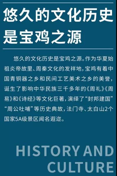 1、周原膴膴,堇荼如饴。宝鸡历史文化悠久。习近平总书记来陕考察重要讲话中提到,“中国”二字最早见于宝鸡出土的青铜器何尊。