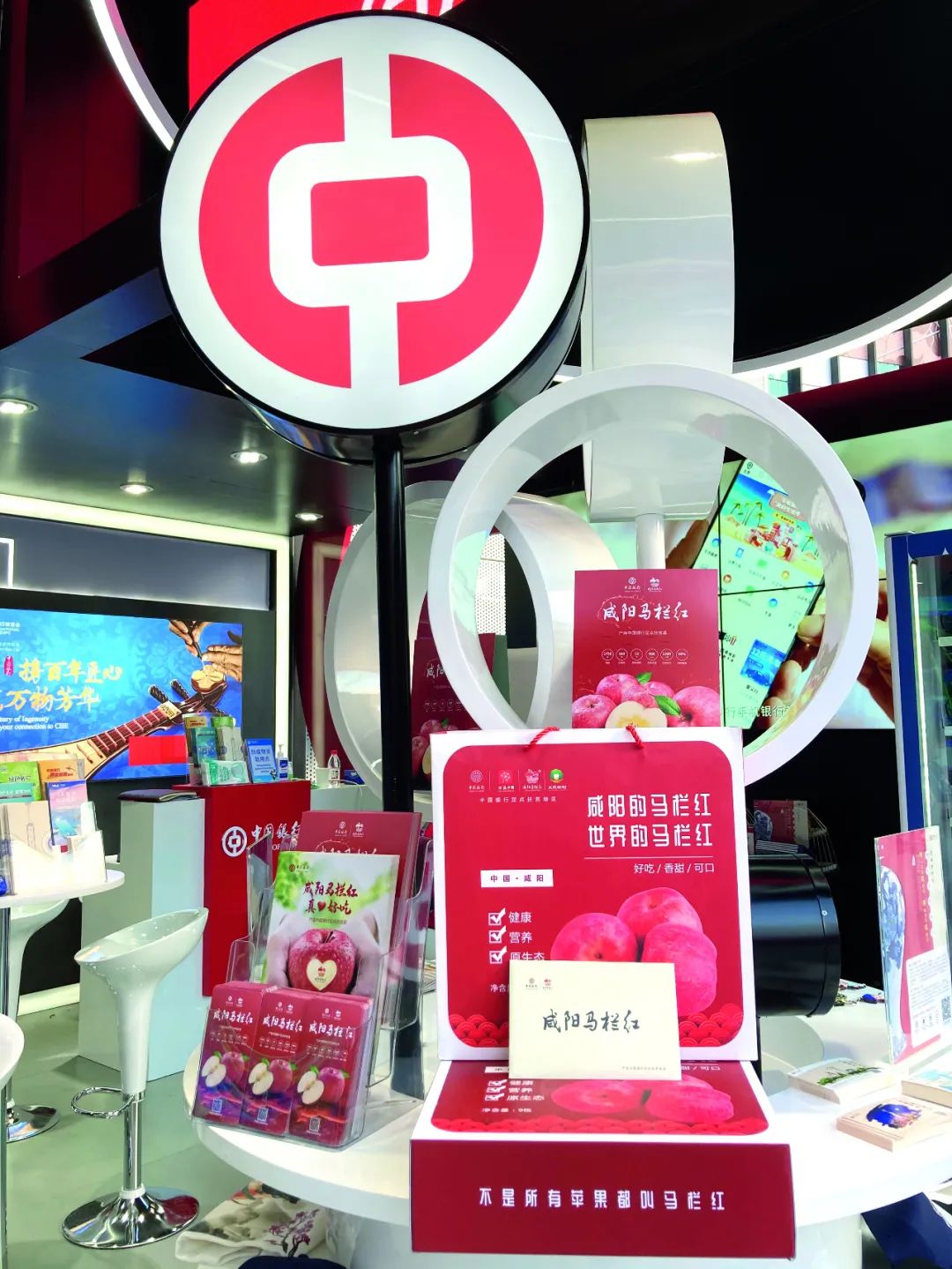 2020年11月,“咸阳马栏红”苹果第一次因中国银行而走进中国国际进口博览会的展厅,向来自全球的客商,展示着红色土地上培育出的累累硕果。