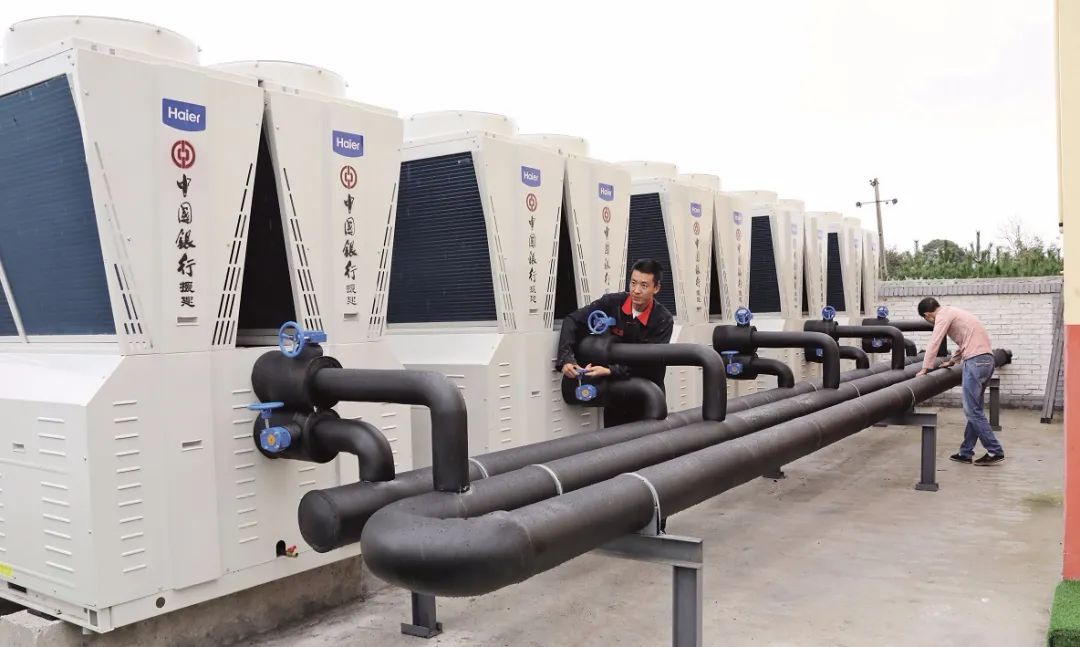 长武县巨家镇中心小学里的空气源热泵模块机组。刘红涛摄