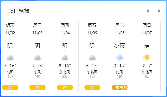 受冷空气影响,11月6日至7日,我市将出现一次强降温天气过程,日平均气温将下降5℃到7℃,日最低气温将降至零下。